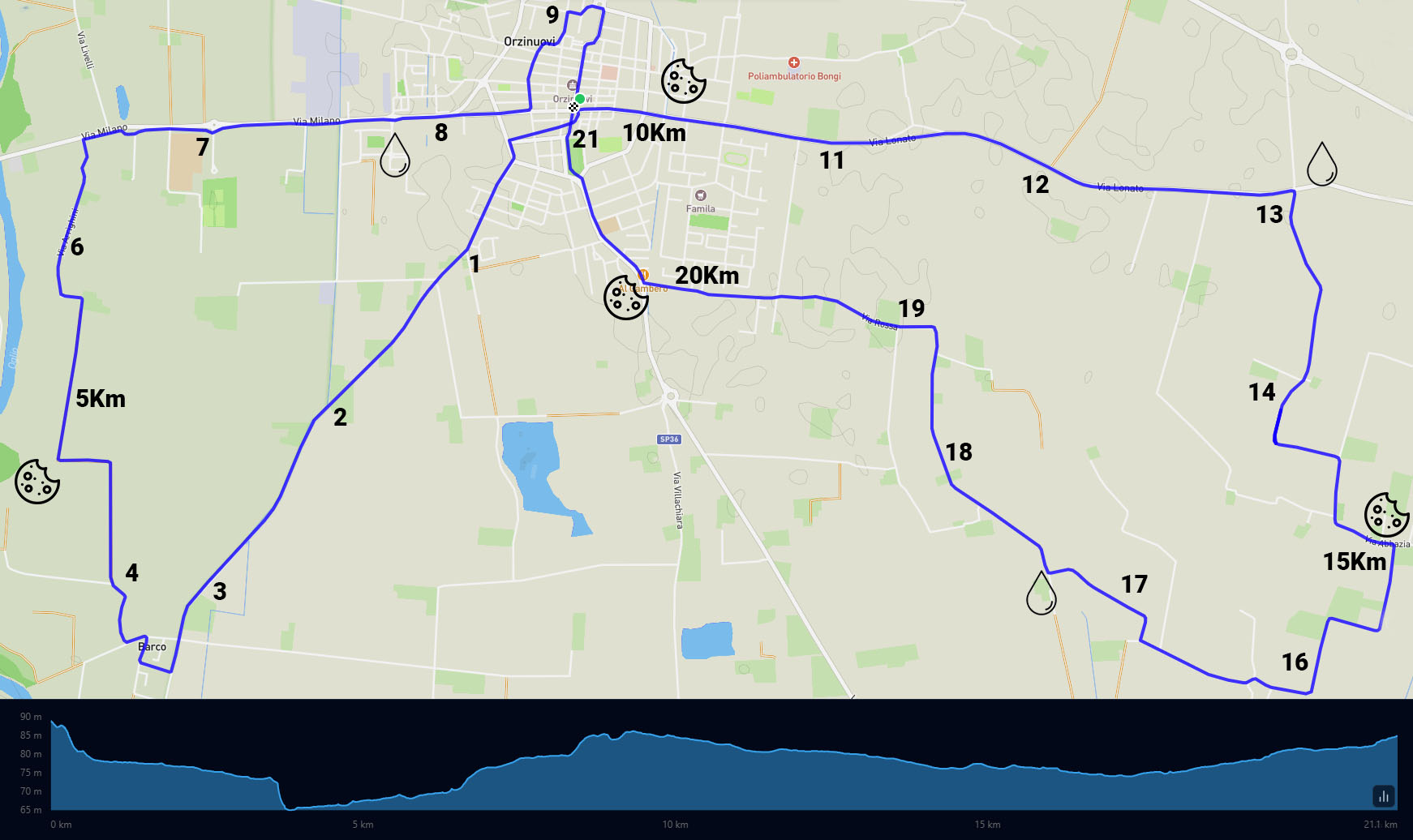 Mezza Maratona competitiva FIDAL con percorso omologato nel 2025. Due anelli distinti con partenza, transito e arrivo nella Piazza di Orzinuovi